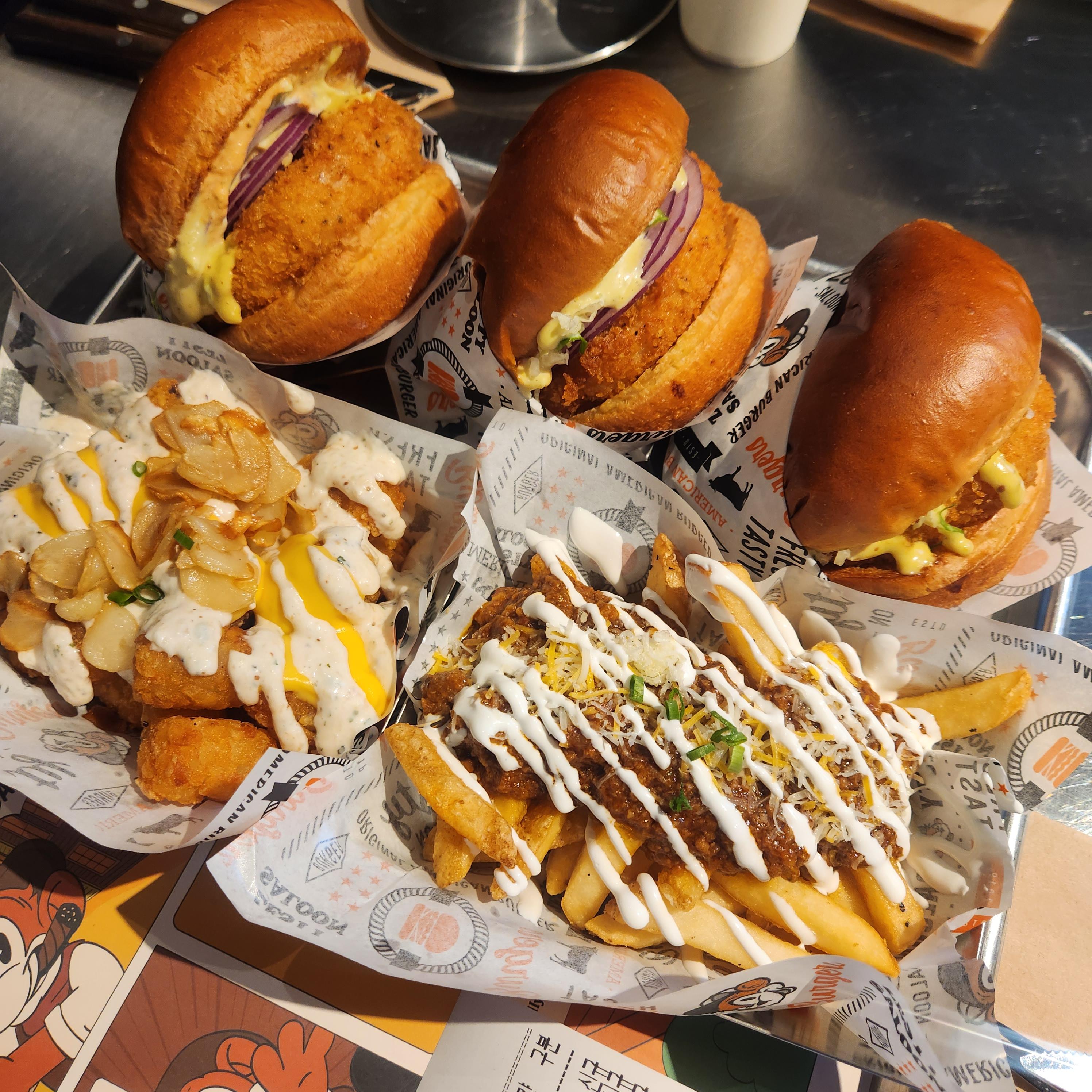 버거는 쉬림프와 비프 패티로 나뉘어져있어요