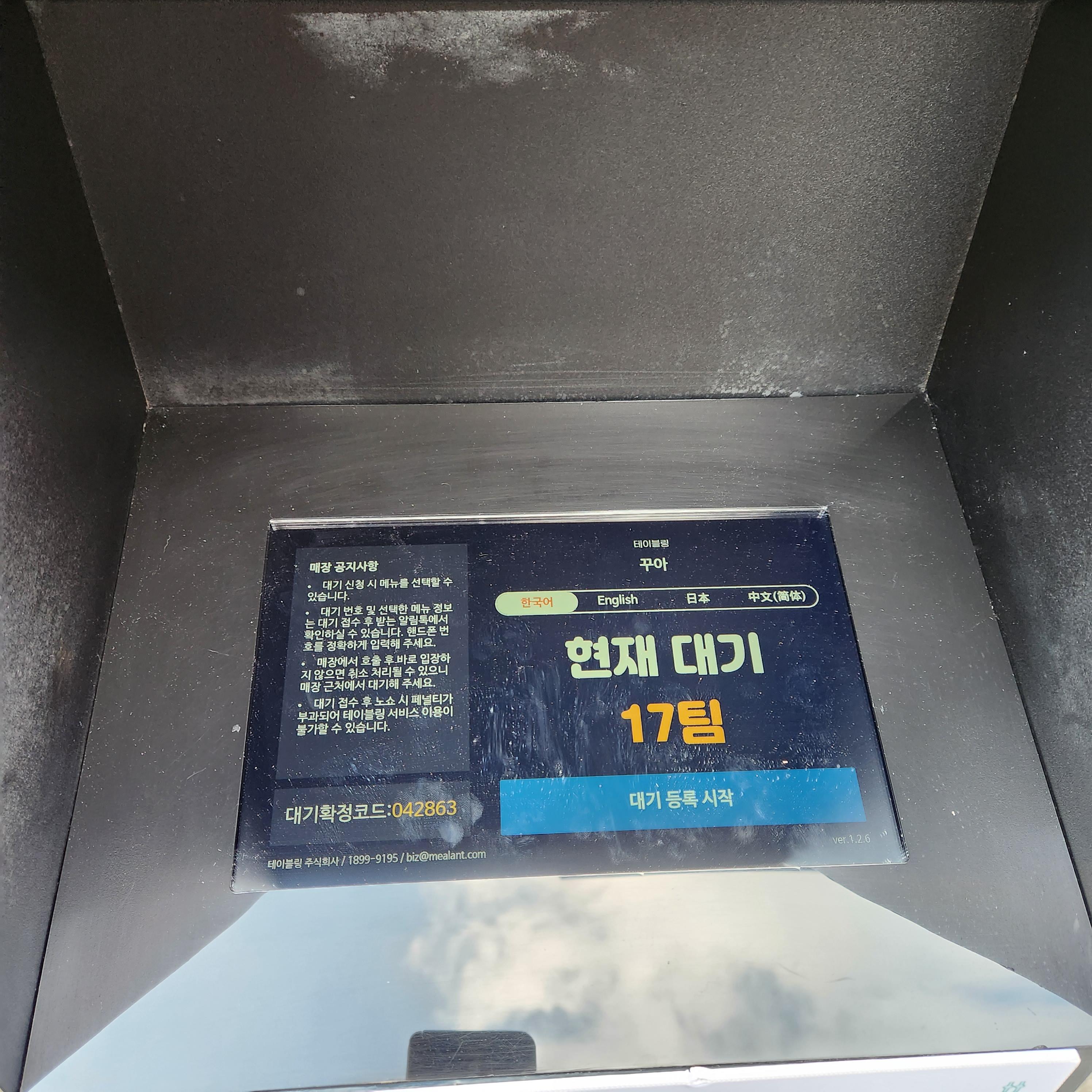 웨이팅 대기는 매장앞에 있는 태블릿에 등록하는 방식이에요.