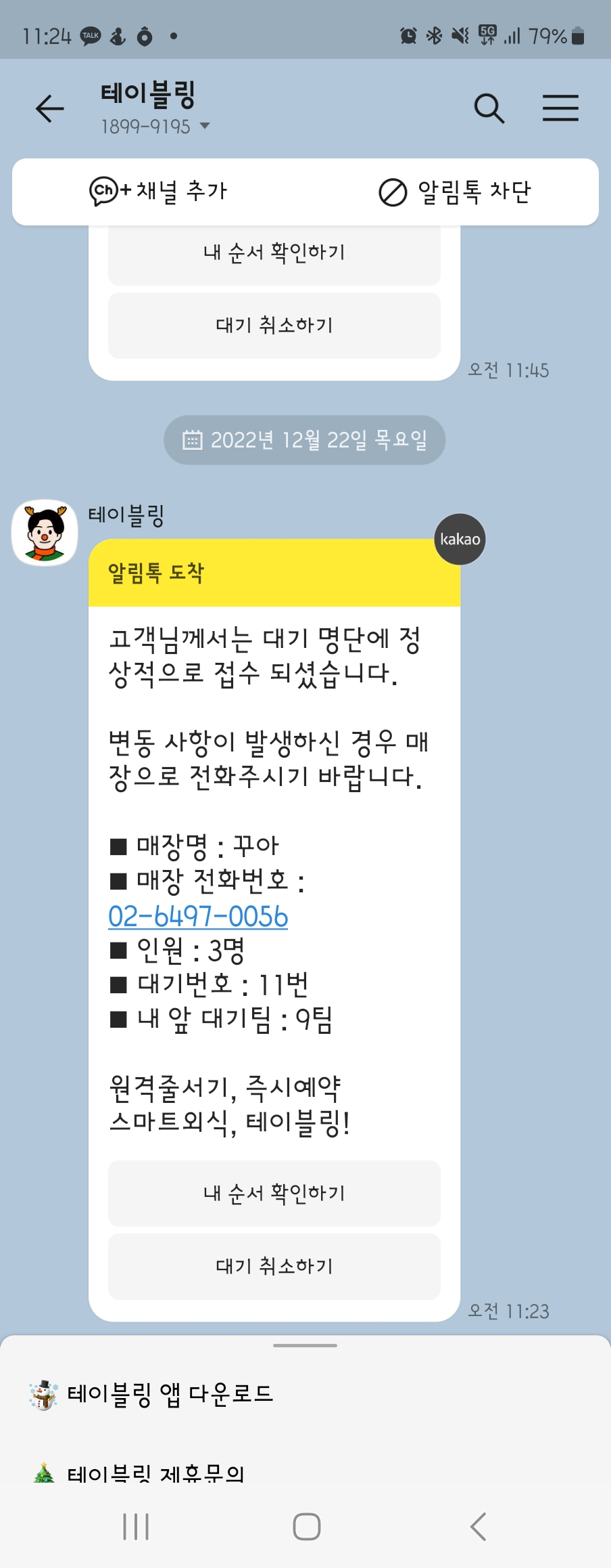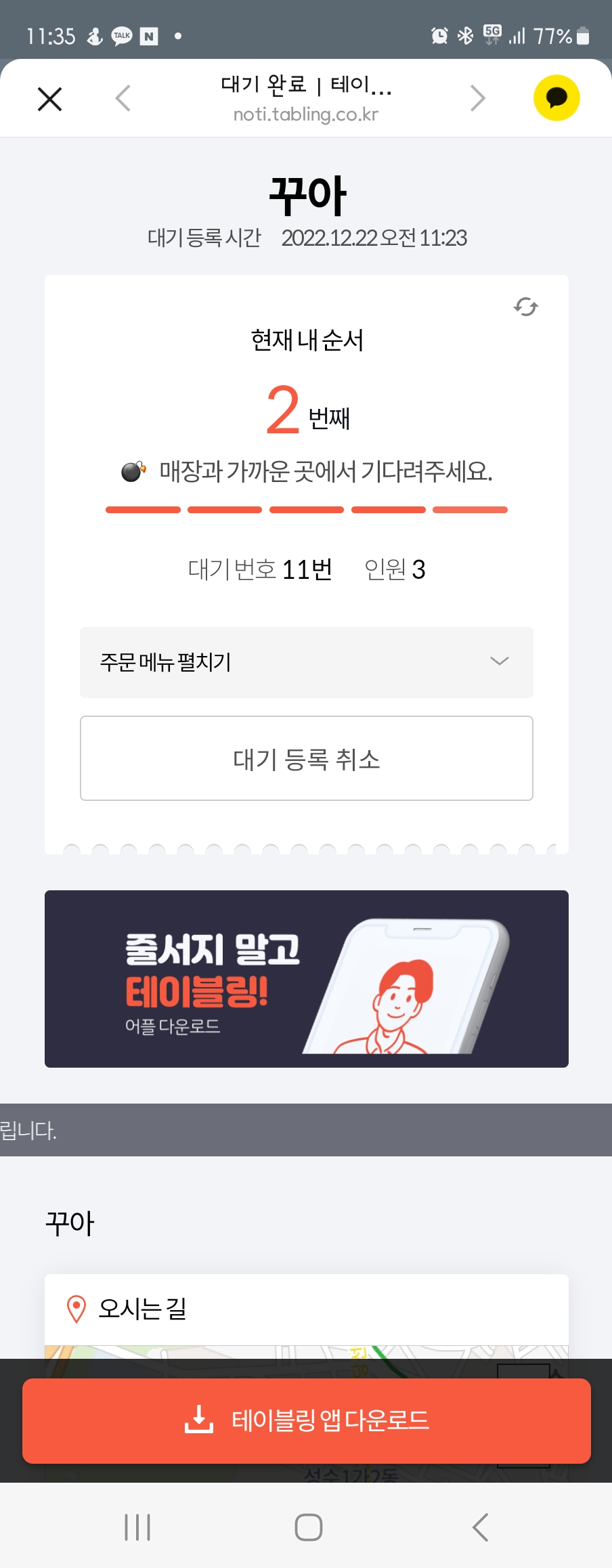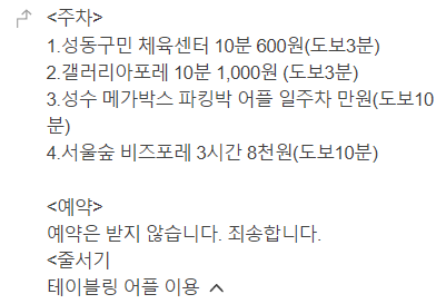 이외에는 테이블링 어플에서 웨이팅 가능