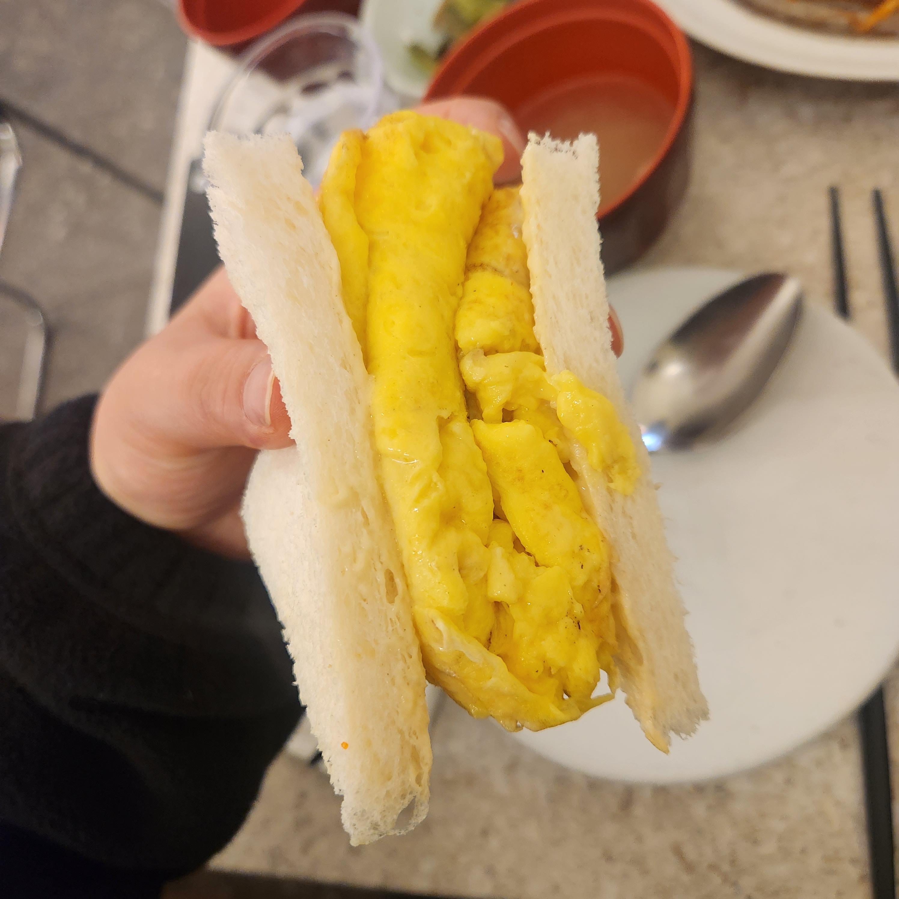 샌드위치 같이 생겼지만 안에 부드러운 계란이 들어가있는데