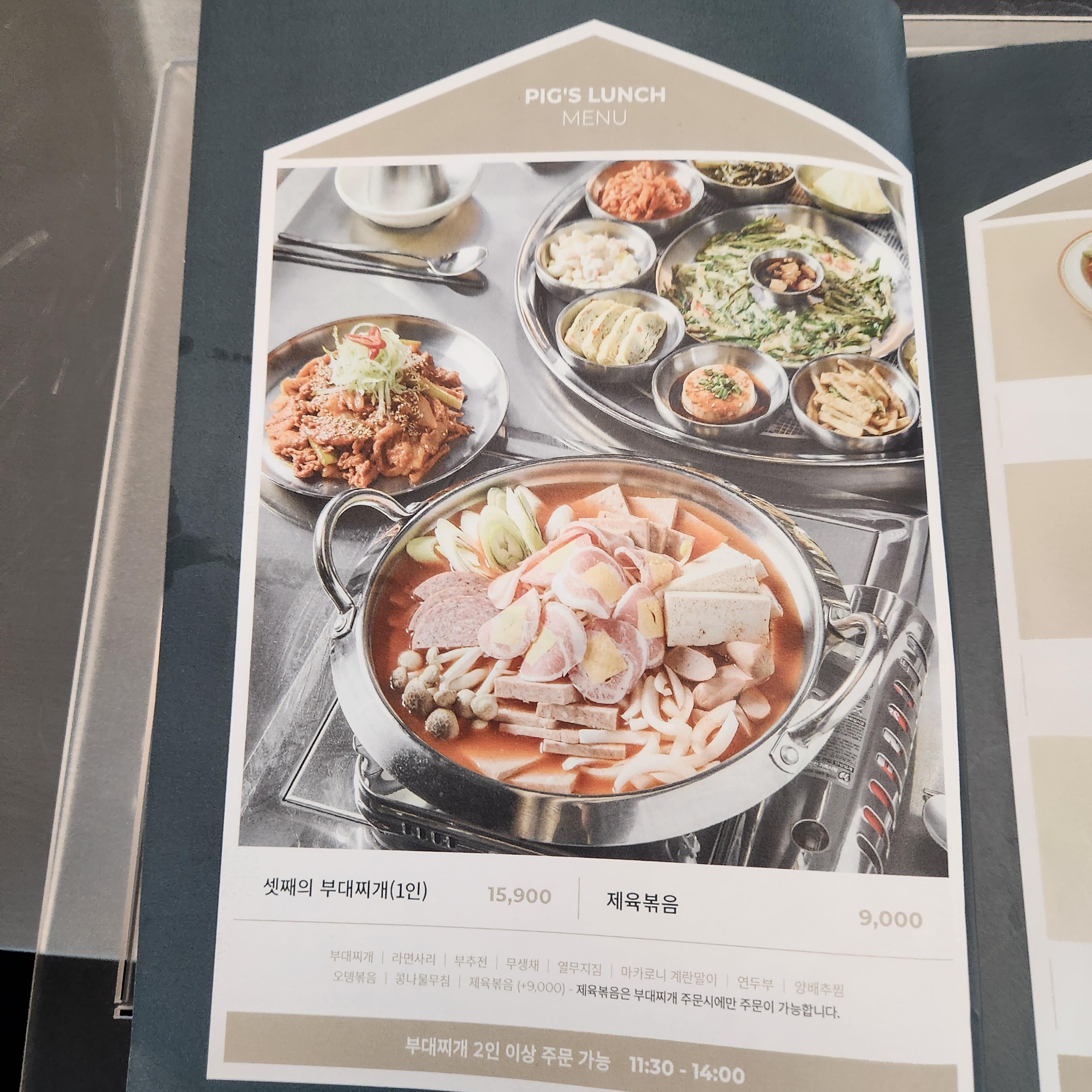 셋째집의 메뉴판의 첫장은 이렇게 런치메뉴로 부대찌개가 보이네요!