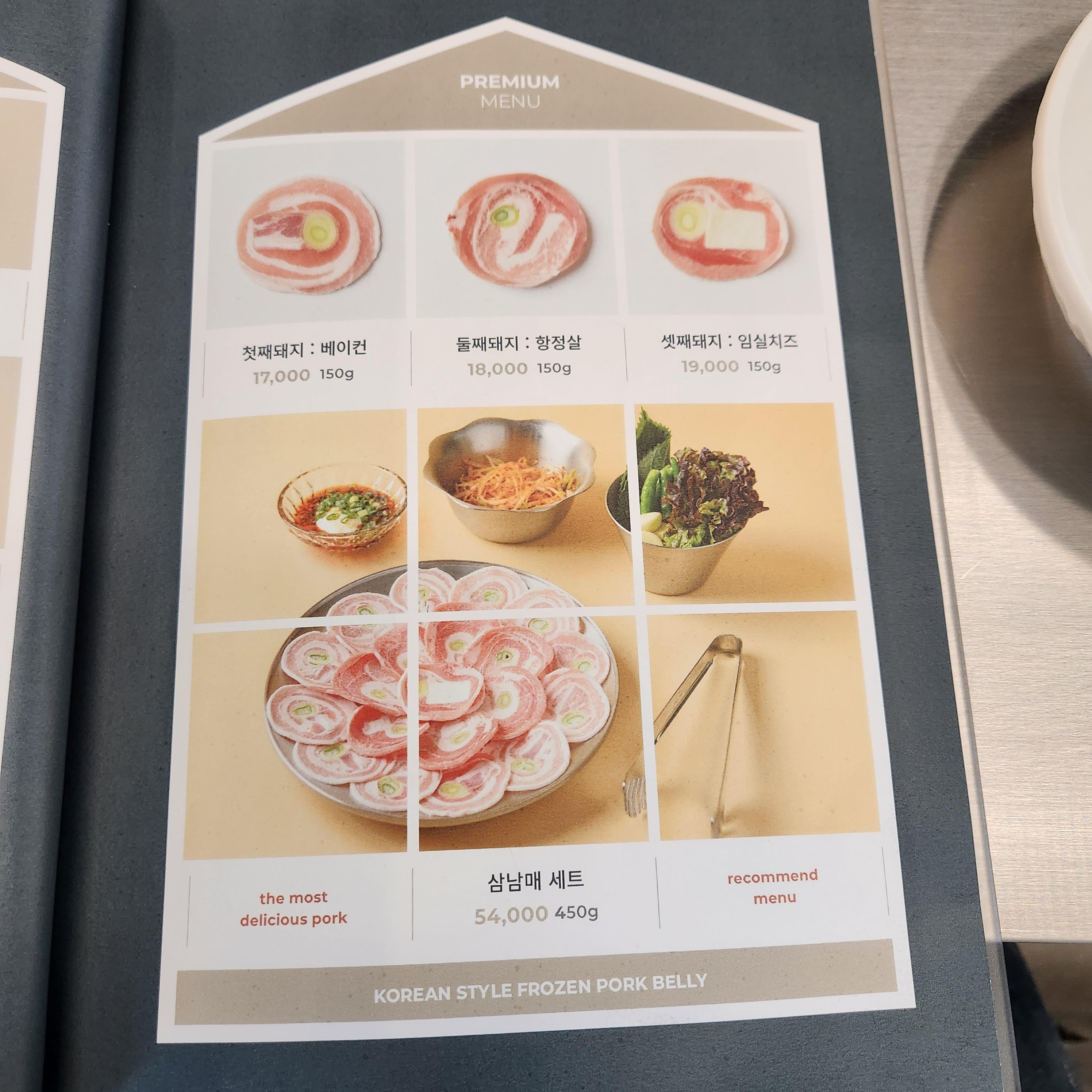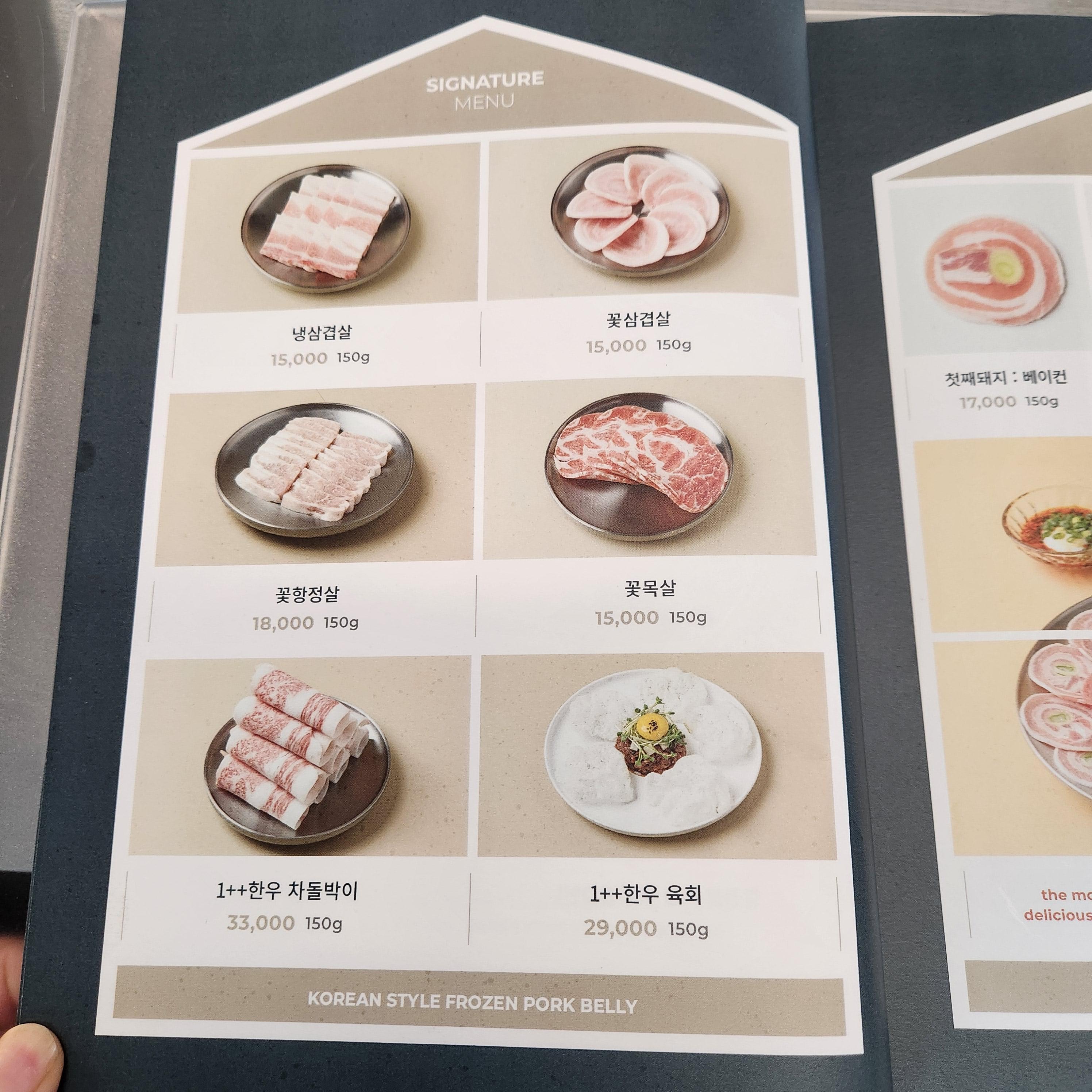 단품으로 냉삼겹살부터 꽃삼겹살 등등