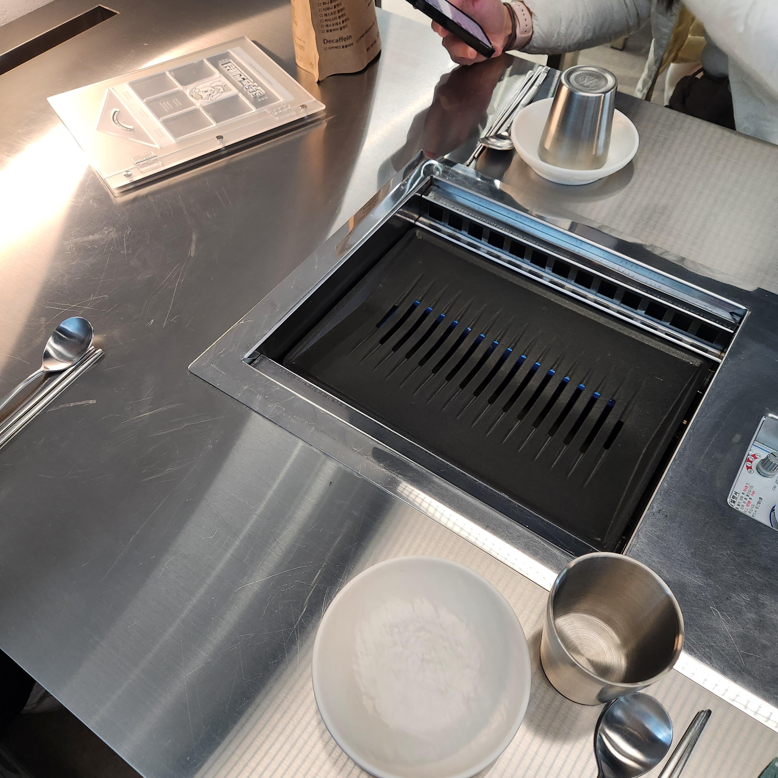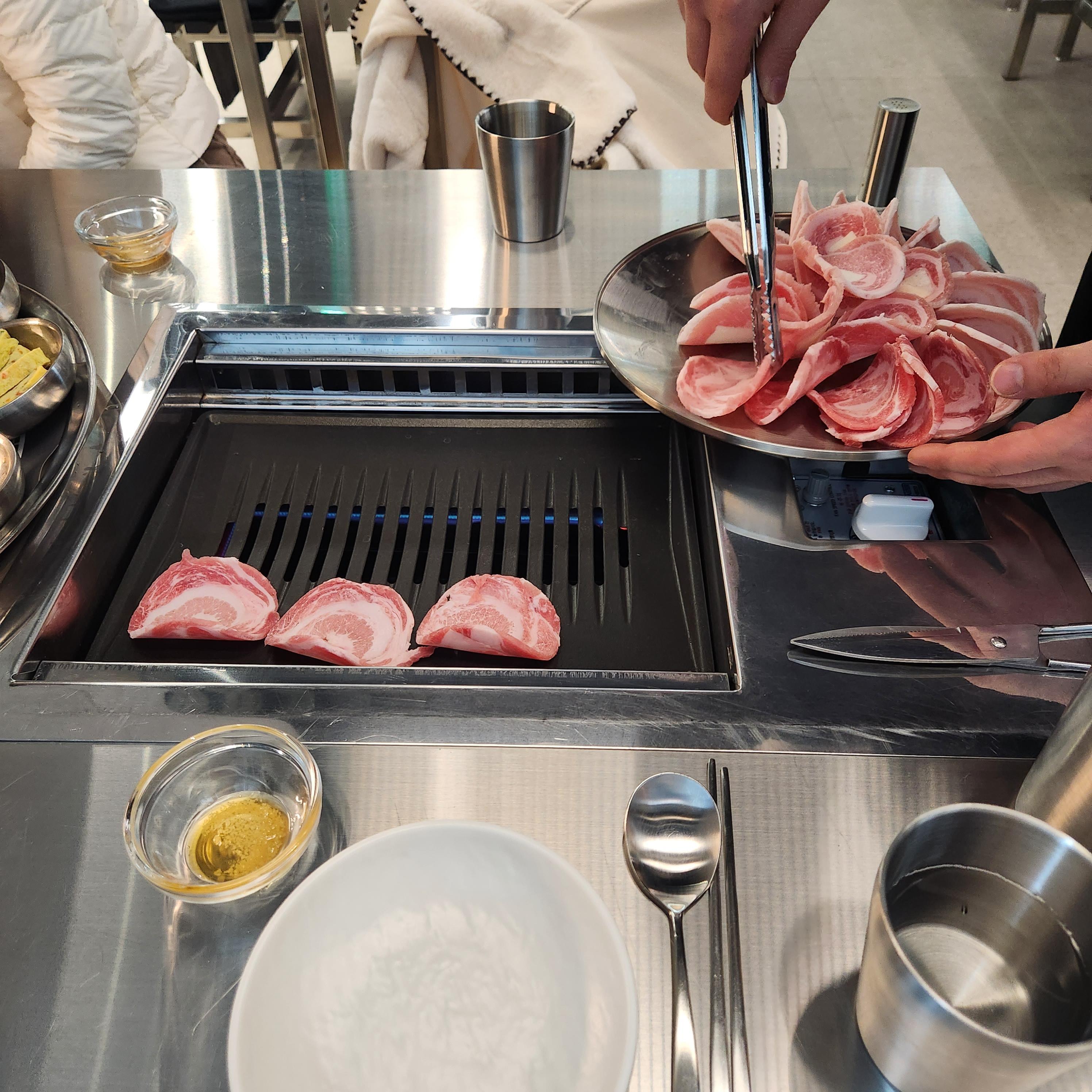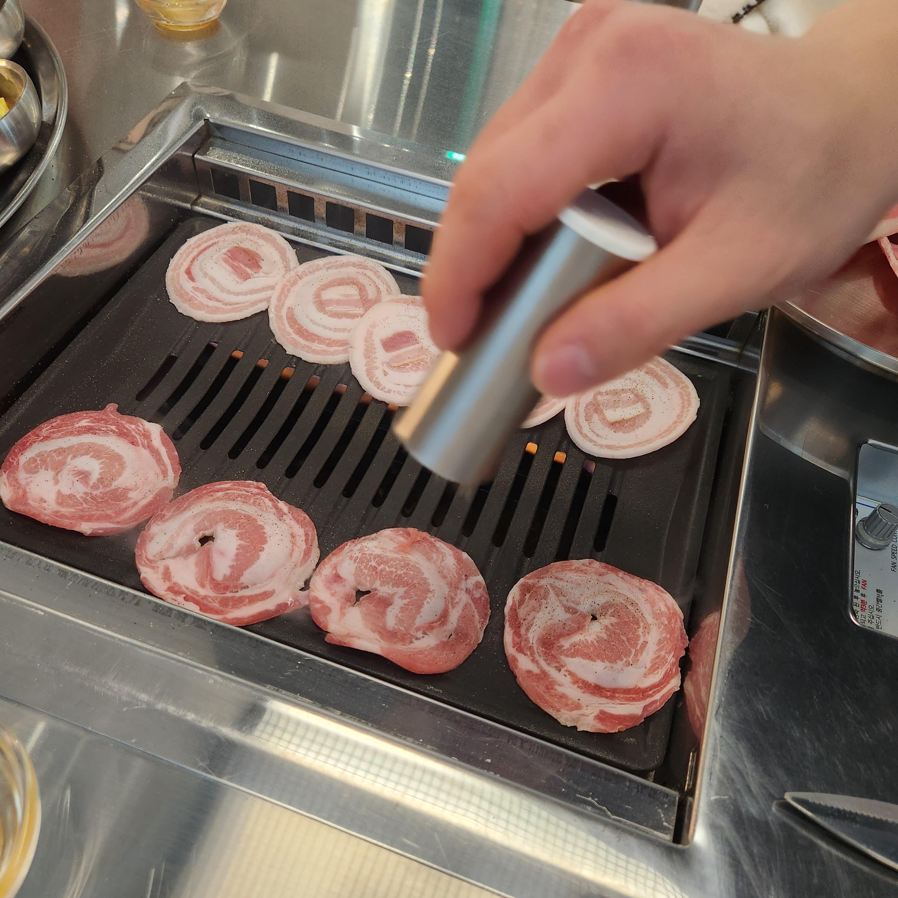 고기를 올려놓고 후추를 뿌려드리냐 해주시는 직원분!