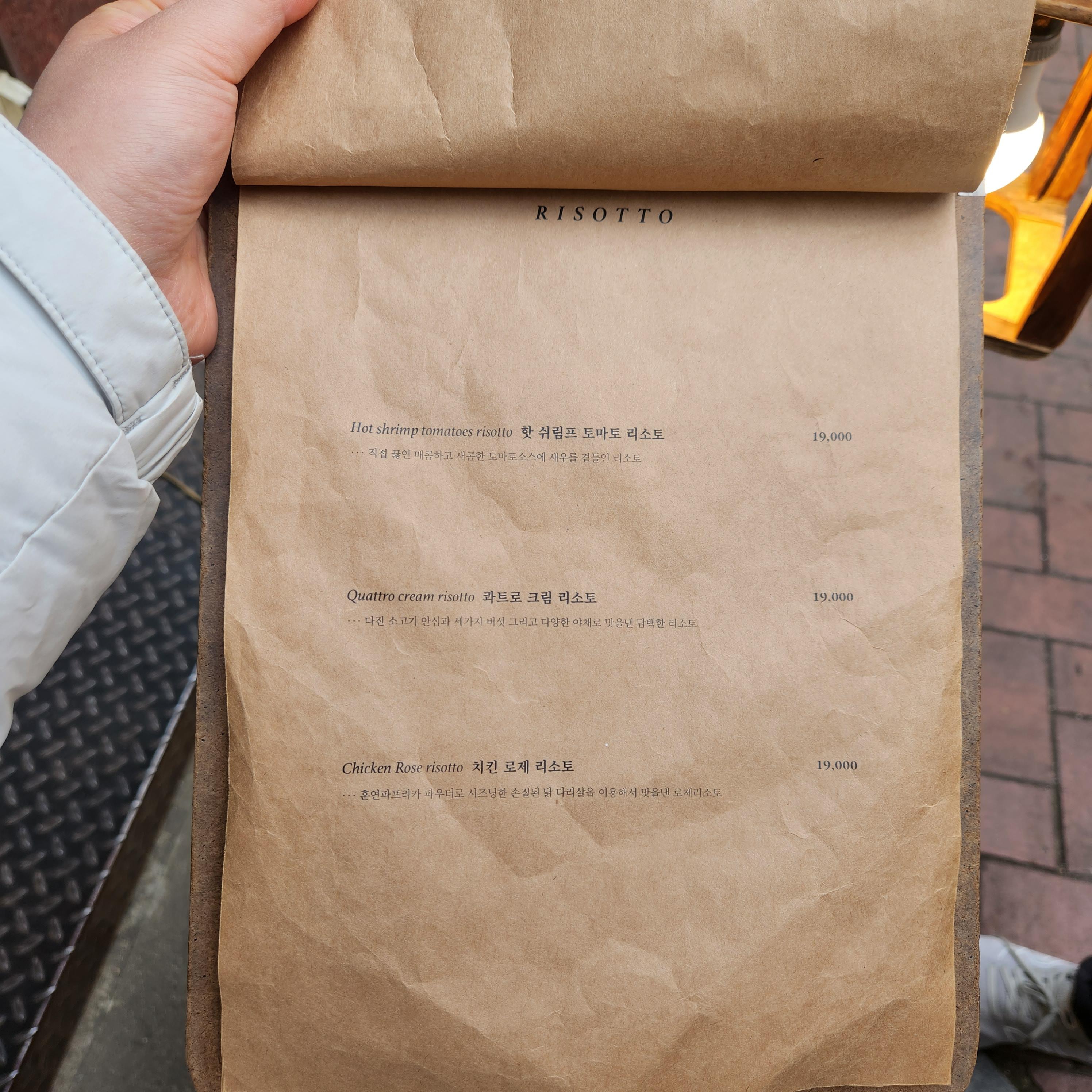 이중, 나는 핫 쉬림프 토마토 리소토를 주문했다.