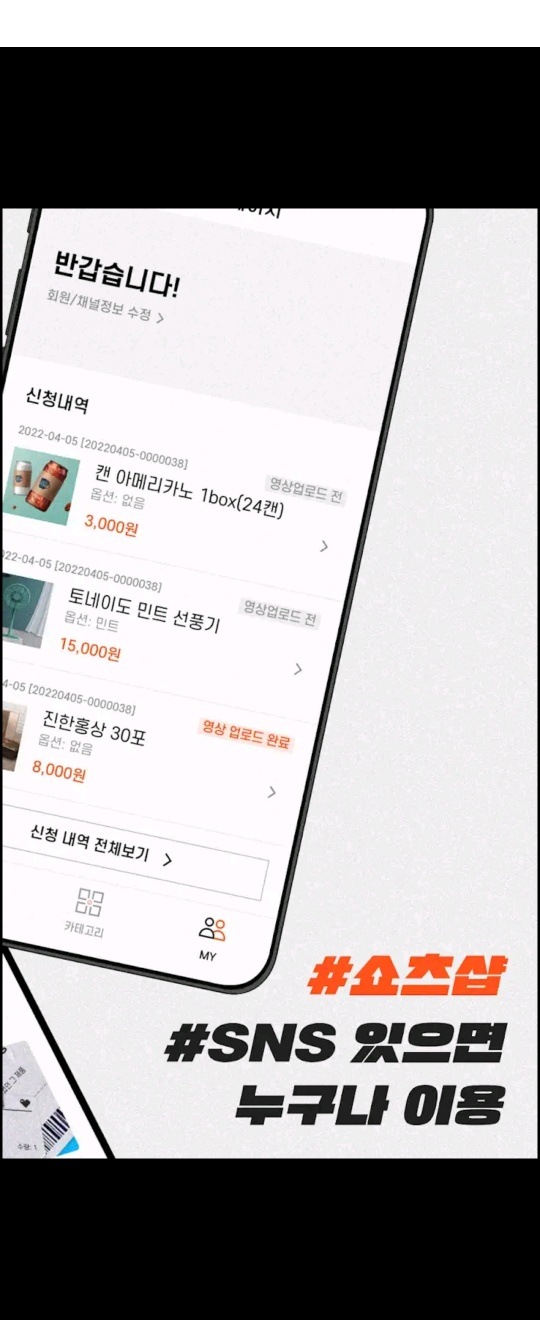 위와 같은 제품처럼 매주 다양한 상품들이 업데이트 되면서 본인이 원하는 상품으로 선택하여 구매한 뒤 집으로 제품을 배송받아서 '세로형'화면으로 대략 60초 이내로 영상을 촬영해서 내 숏폼 채널에 리뷰를 하면됩니다.