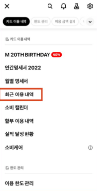 결제일별 사용기간에 대해 알아보았으니, 이제 카드를 사용하며 결제한 내역에 대해 알아보도록 하겠습니다.